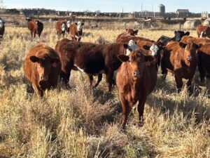 -Mainly red exotic heifers with a few blacks. Bred to low birth weight black angus bulls. Bulls out June 27th for 60 days.